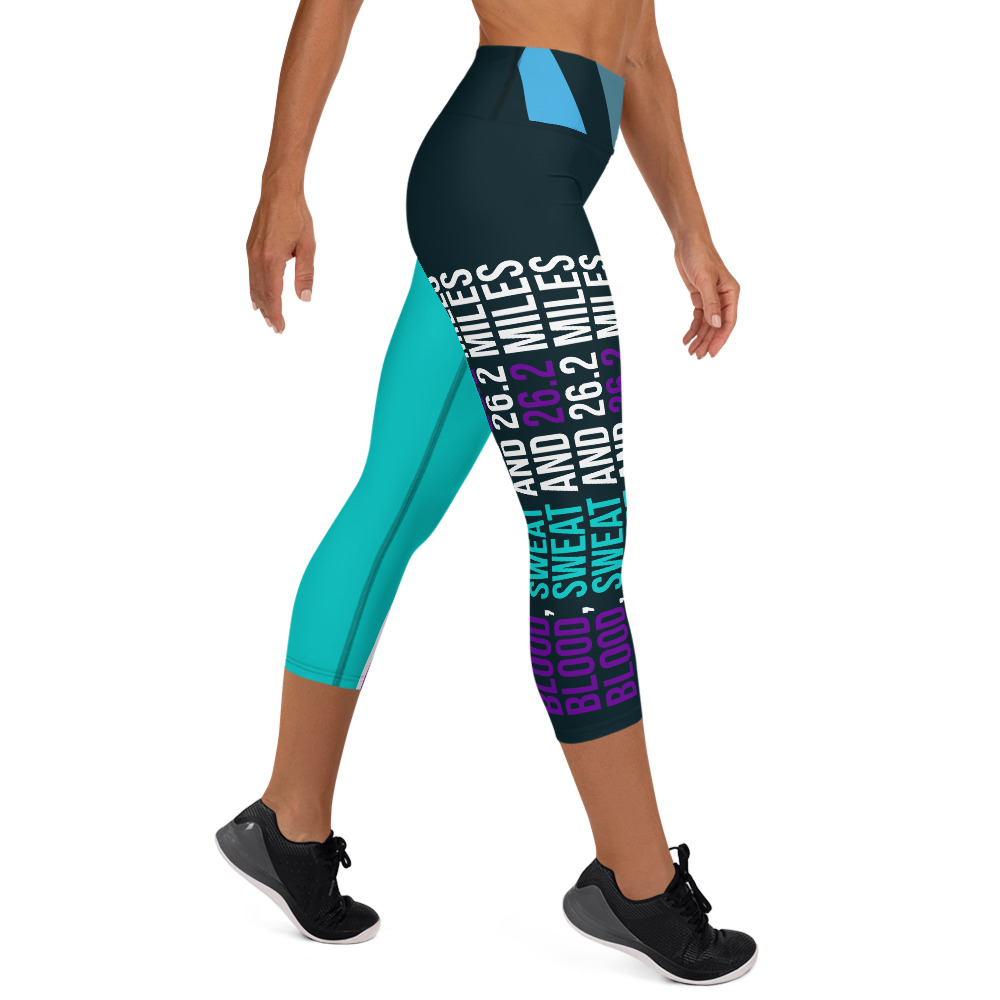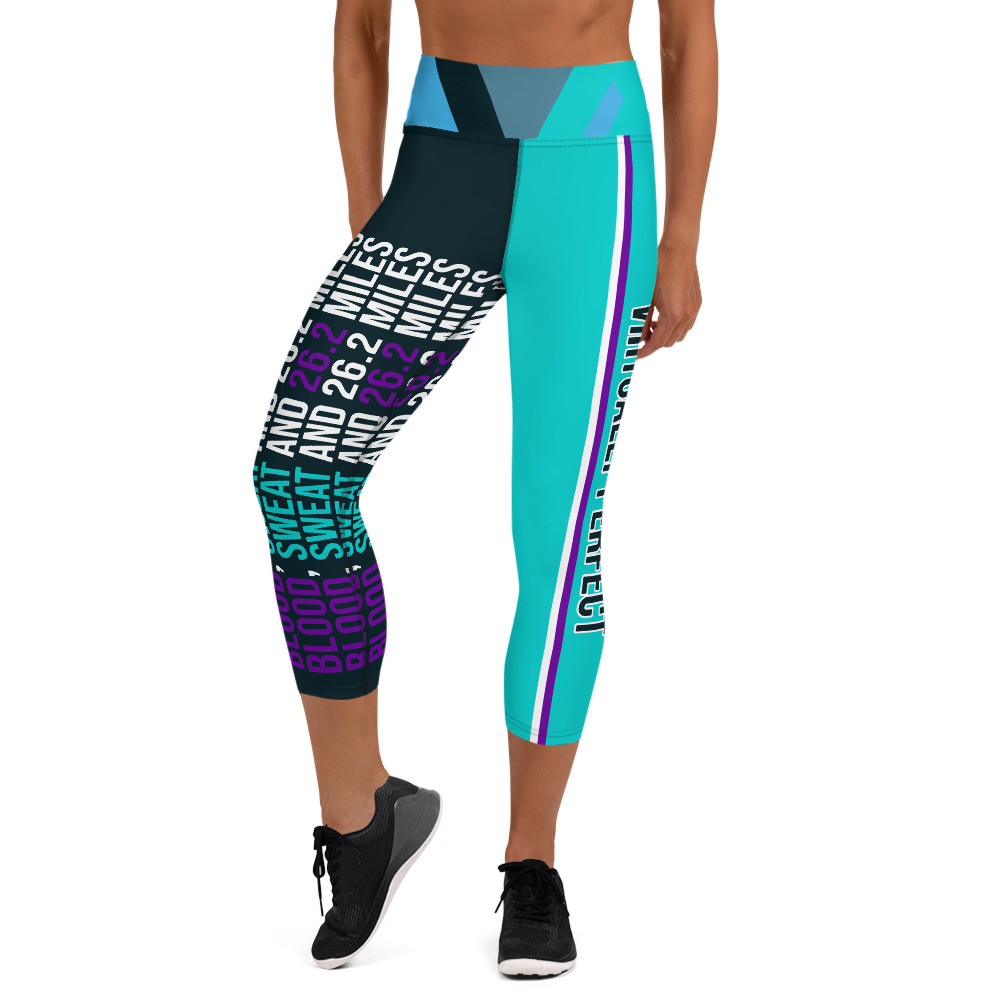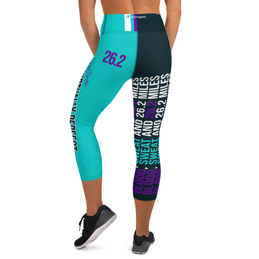 Blood, Sweat and 26.2 miles Capri running leggings with Virtually Perfect text perfect for your virtual marathon.
